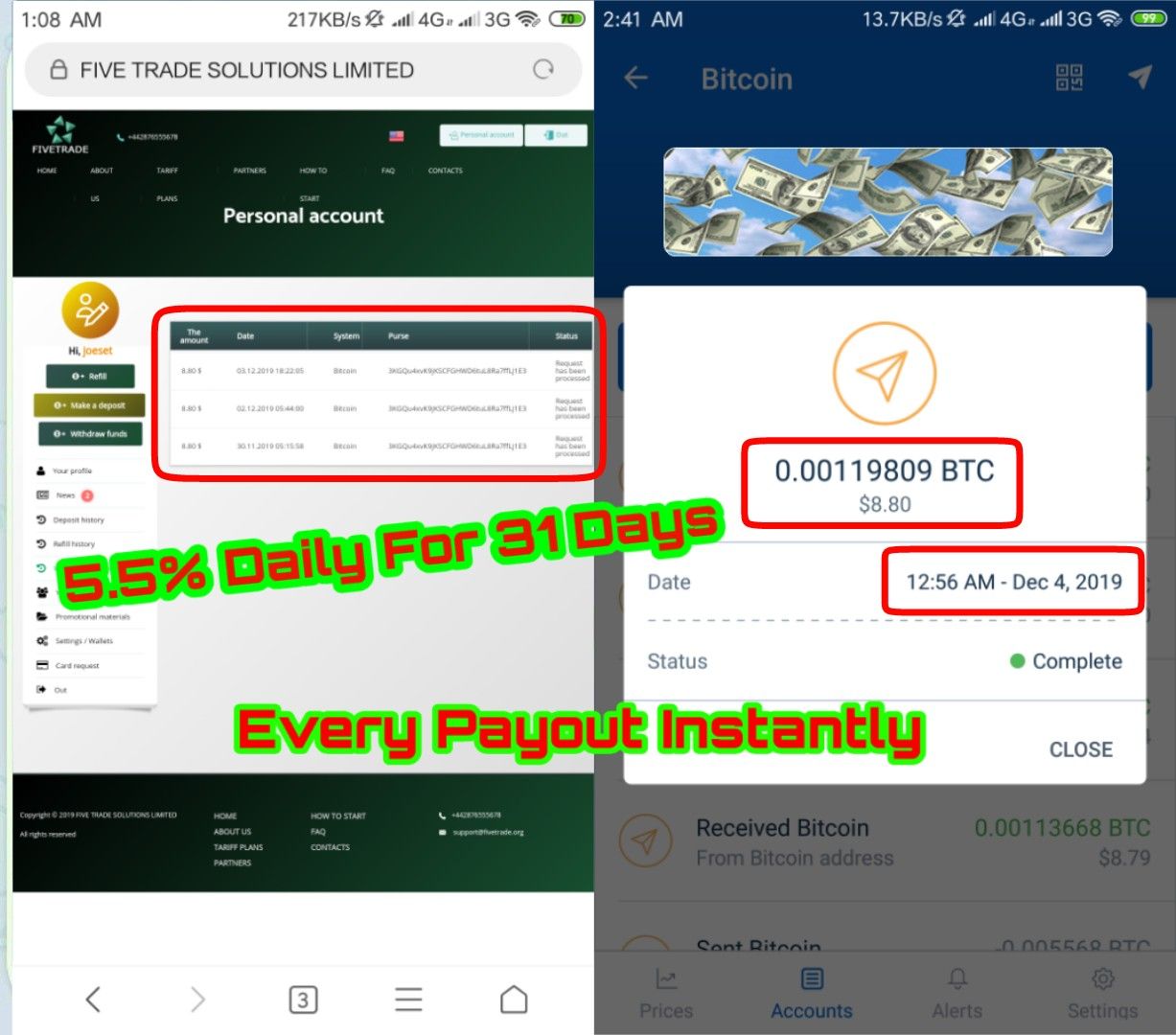 Latest payout 8.8$ just received
