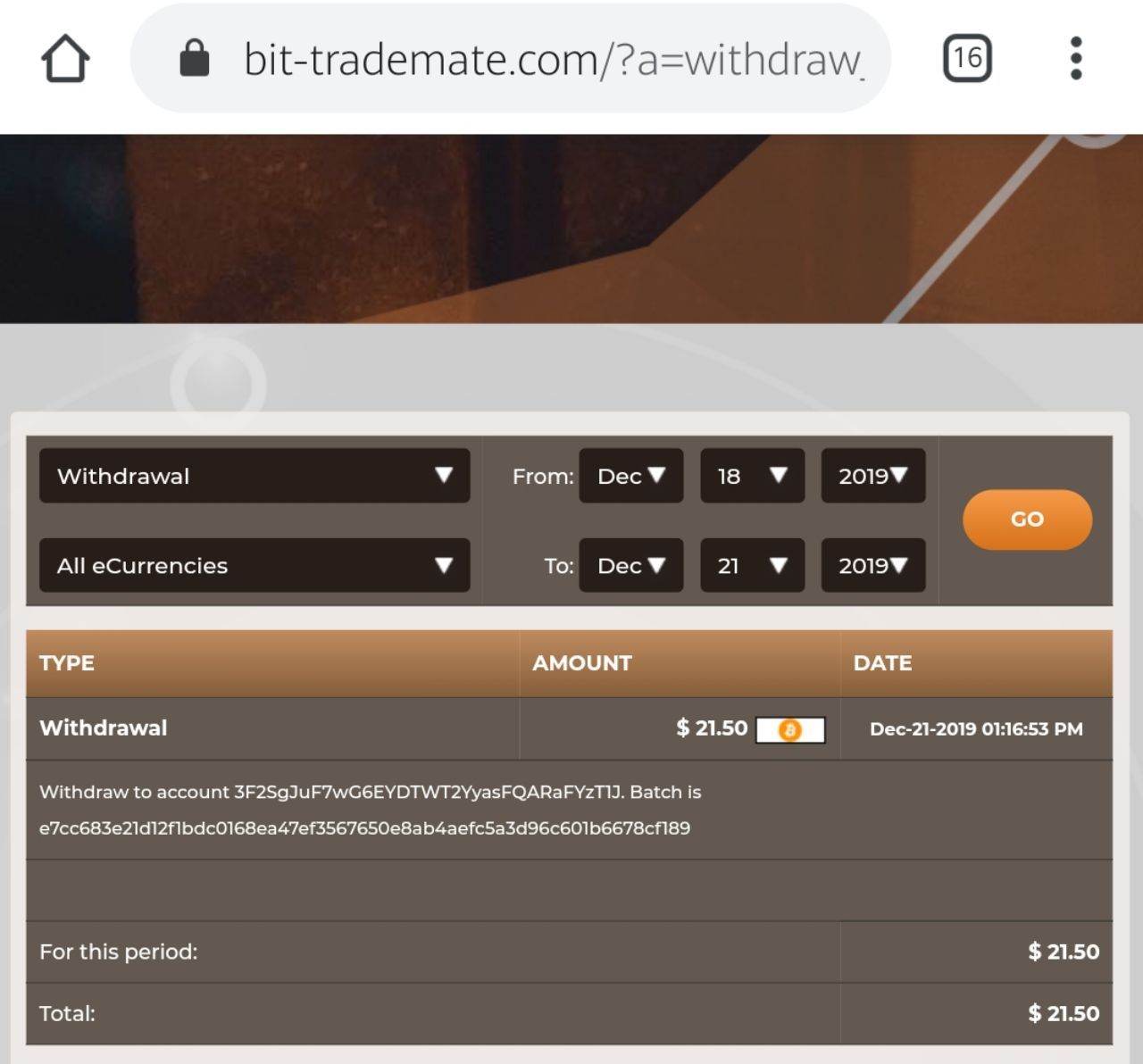Latest payout 8.8$ just received