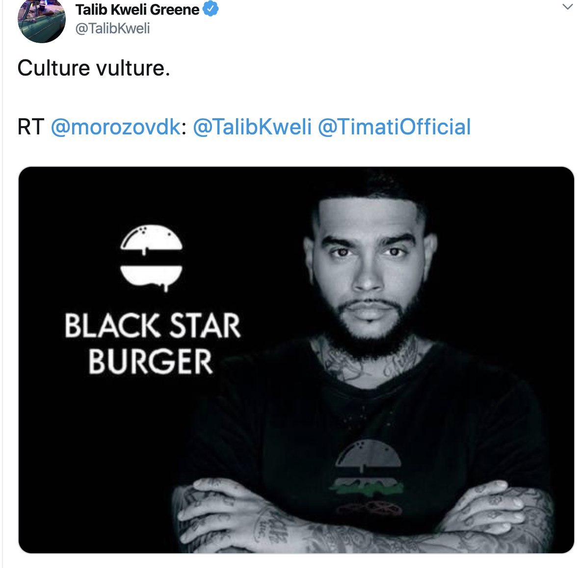 Талиб — отличный пример того, как хороший исполнитель вдруг решает, что он мессия и его задача на этой планете — больше, чем просто читать рэпчик. Он давно борется с «белым превосходством» и видит нацистов буквально под каждым диваном. Ну а пару дней назад в Twitter, где у него больше миллиона подписчиков, к рэперу пришёл его русский коллега I1 и на хорошем английском попытался объяснить, что война с расизмом — это не наша война. В России не было чёрных рабов, не было колоний, а в рабстве до 1861 года были свои же сограждане.