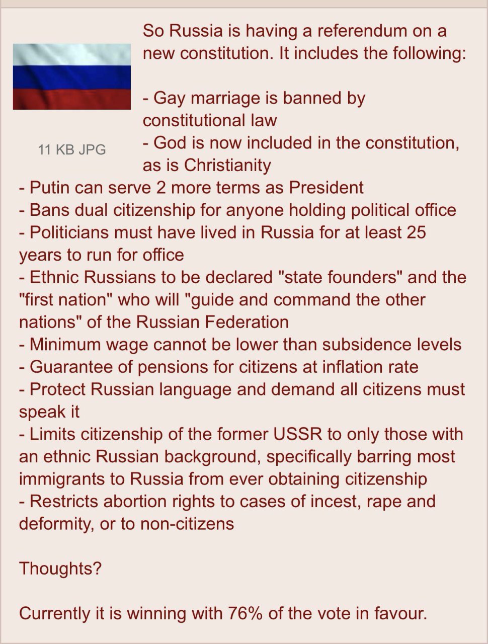 То есть, возвращаясь к теме и переводя на наши деньги, — как если бы: 1) Юнемана назвали «правым боевиком» на ОРТ и передовице «Комсомольской правды»; 2) неожиданный губернатор-ЛДПРовец Владимир Сипягин по звонку из Кремля подал в отставку на другой день после избрания; 3) Егора Просвирнина до полусмерти избил бы Рудой, а после — получил грант от АП на «борьбу с ненавистью» (это, если что, просто отвлечённый пример, Егору и всем добрым людям — здравия); Эдварда Чеснокова отправили бы в подземелья Лубянки за его антилиберальную пьесу «Варяг» (пьесу, как допишу — покажу).