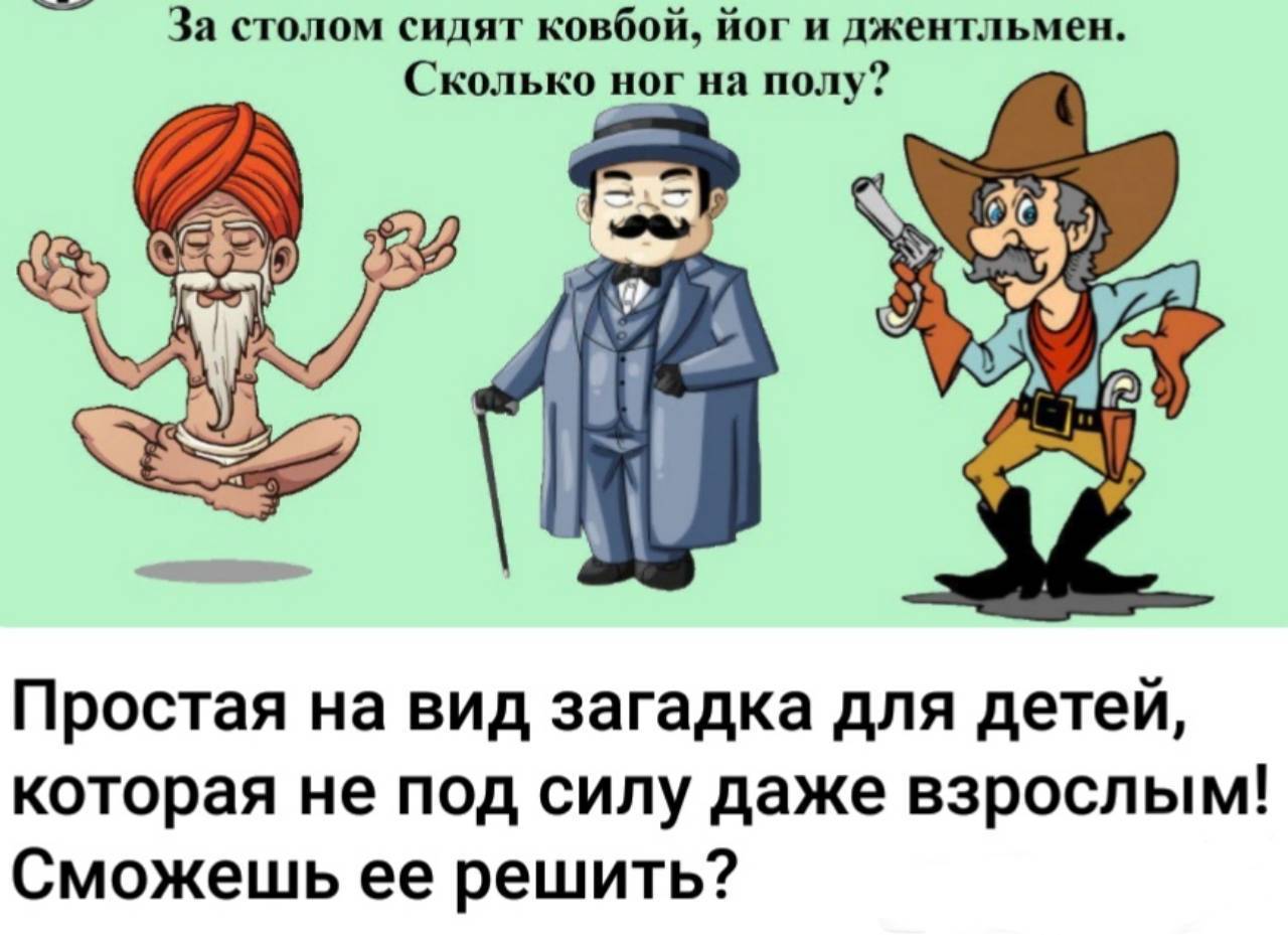 ​​За столом сидят ковбой, йог и джентльмен. Сколько ног на полу?