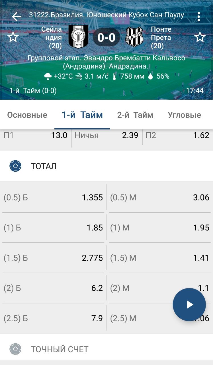 📣 1й тайм ТБ 1