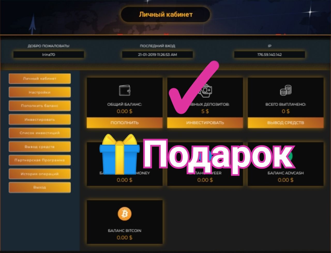 ✅ Начисления и вывод возможны в платёжных системах  BTC, ADVcash, Payeer, Perfect Money.