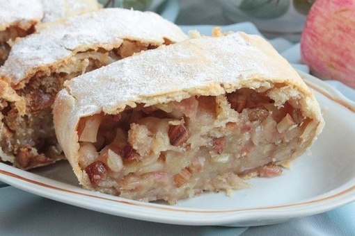 Яблочный штрудель с миндалем и изюмом.