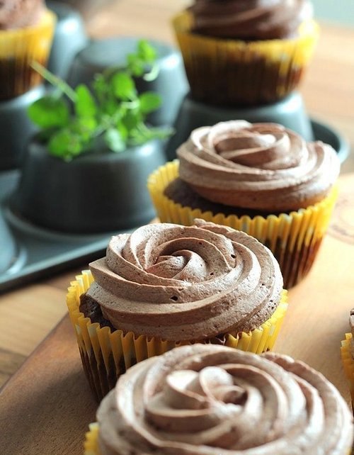 Шоколадные маффины с шоколадным фростингом.