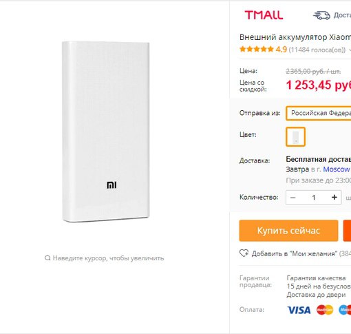 ✊ Внешний аккумулятор Xiaomi Mi Power Bank 2C 20000 за 953,45 руб. с промокодом Tmall07new