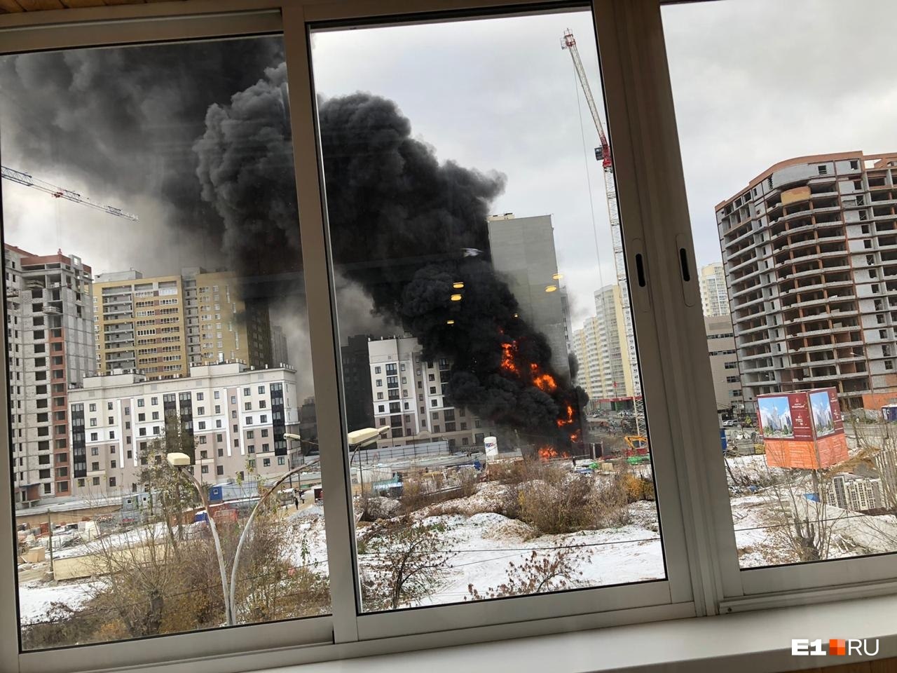 Читатели-очевидцы делятся фотографиями. Горит в районе строящегося жилого квартала "Федерация".