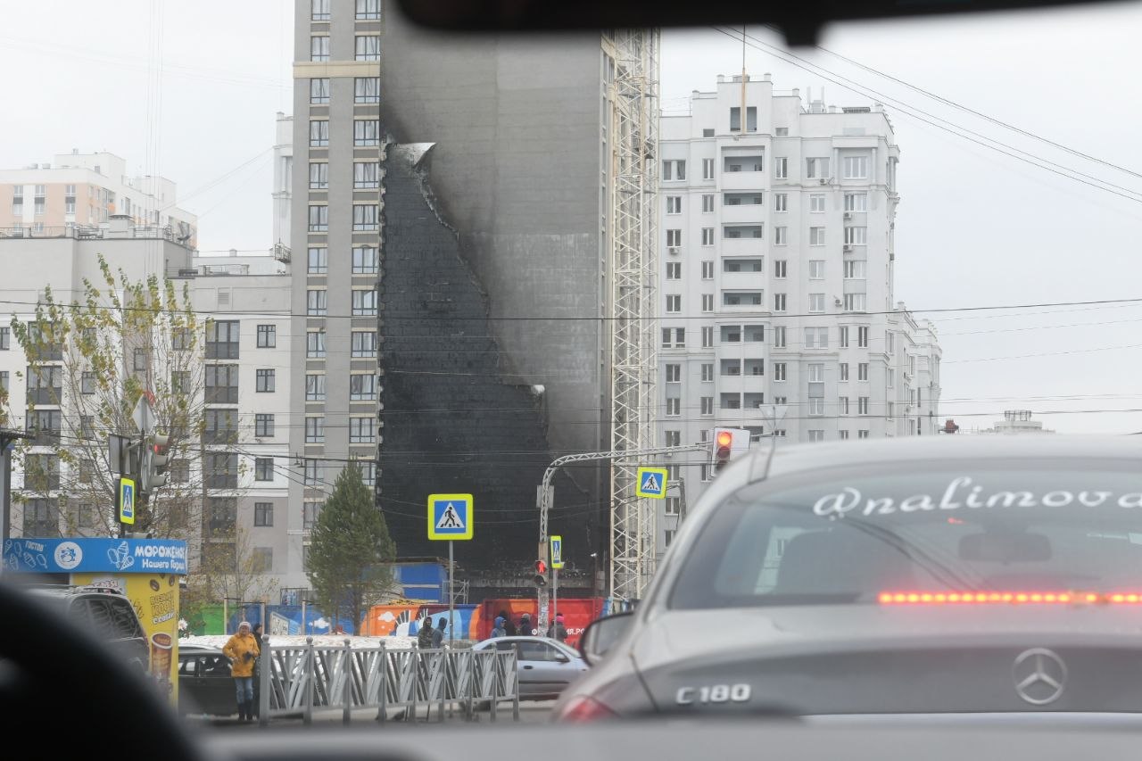 Из-за пожара вокруг стройки затруднено движение. Небольшие пробки на улицах Белинского и Степана Разина.