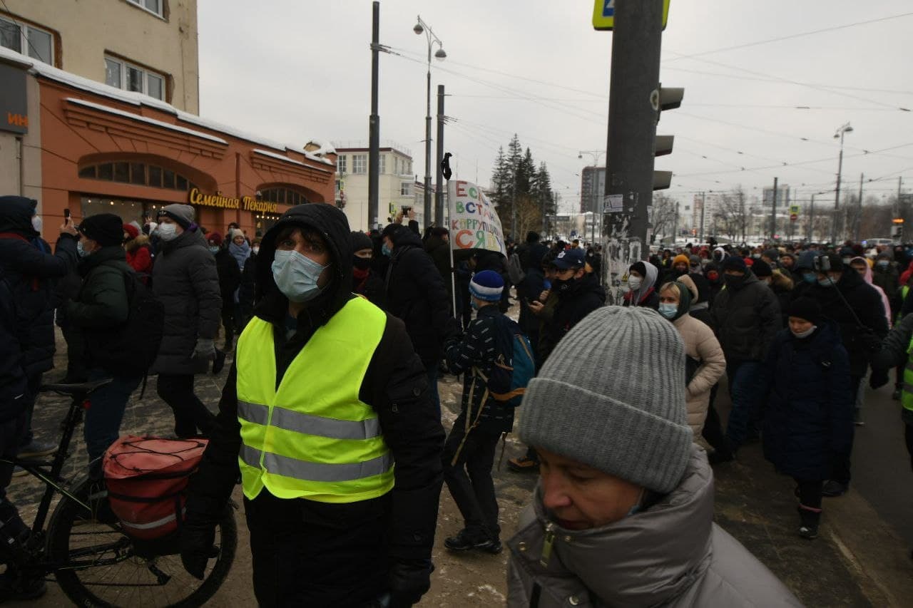 Людская река медленно, но уверенно двигается по проспекту Ленина. «Навальному свободу!», — скандируют где-то вначале.