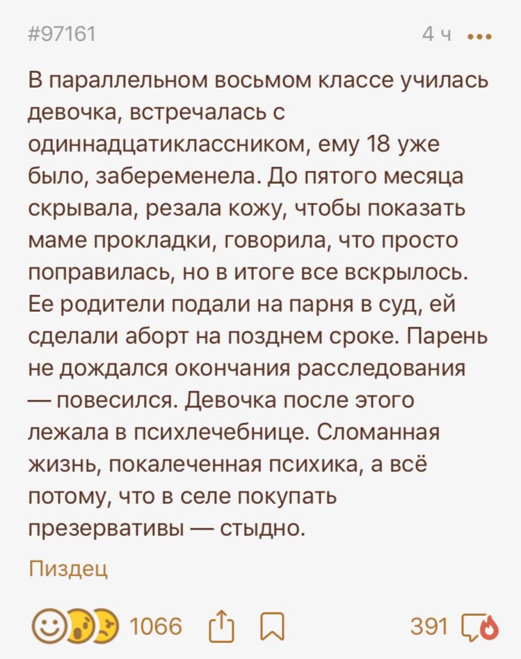 Моей бабушке был 81 год, когда она умерла. Больше 20 лет она не ходила, а последние 4 года лишь лежала. Моя мама все годы ухаживала за ней. Мне было 16, когда я проснулась с утра от плача матери. Она случайно сломала бабушке руку. Приехала скорая, наложили гипс, но это было бесполезно, в её возрасте и положении кости не срастаются. Она ничего не понимала, боли не чувствовала и угасла за неделю. После её смерти, очень мучительной, ко мне подошла мед работник, которая осматривала её тело и омывала. Спросила, не жаловалась ли бабушка на боли в ноге. Да, такое было, я сказала об этом. Оказывается, бедро было сломано, больше полугода, и немного срослось к моменту смерти. Мама не знает этого до сих пор. Я не могу представить, какие муки вынесла моя бабушка. И очень боюсь, что подобное может случится со мной.
