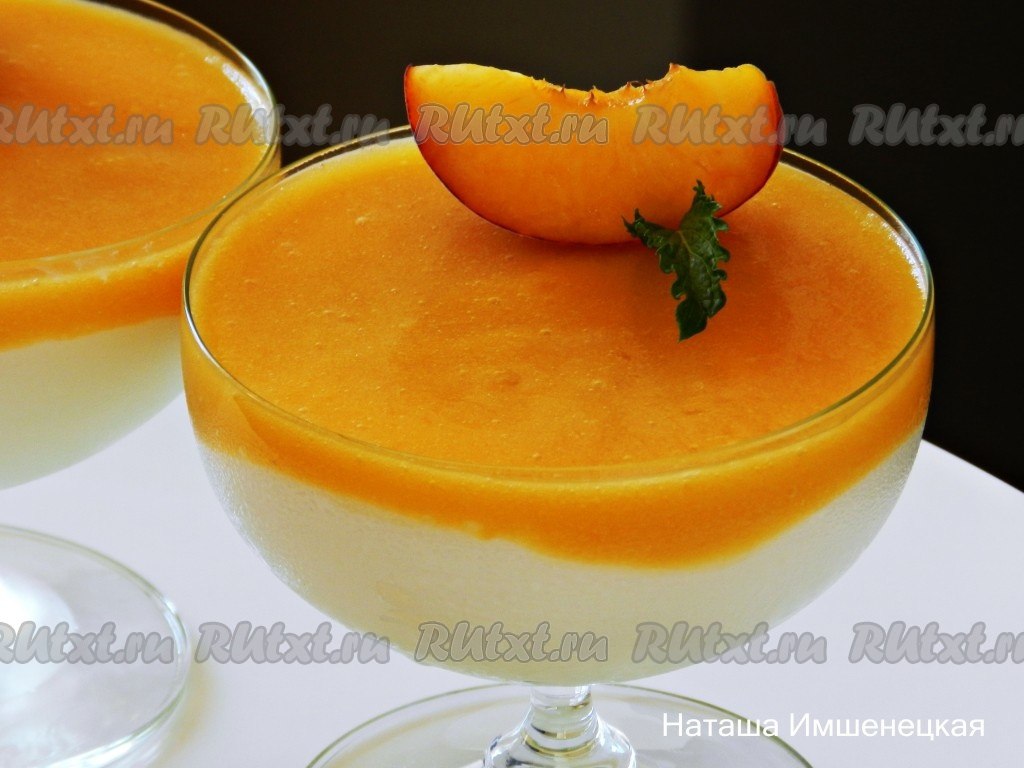 Затем выложить персиковое пюре и убрать десерт в холодильник для застывания примерно на 2 часа.