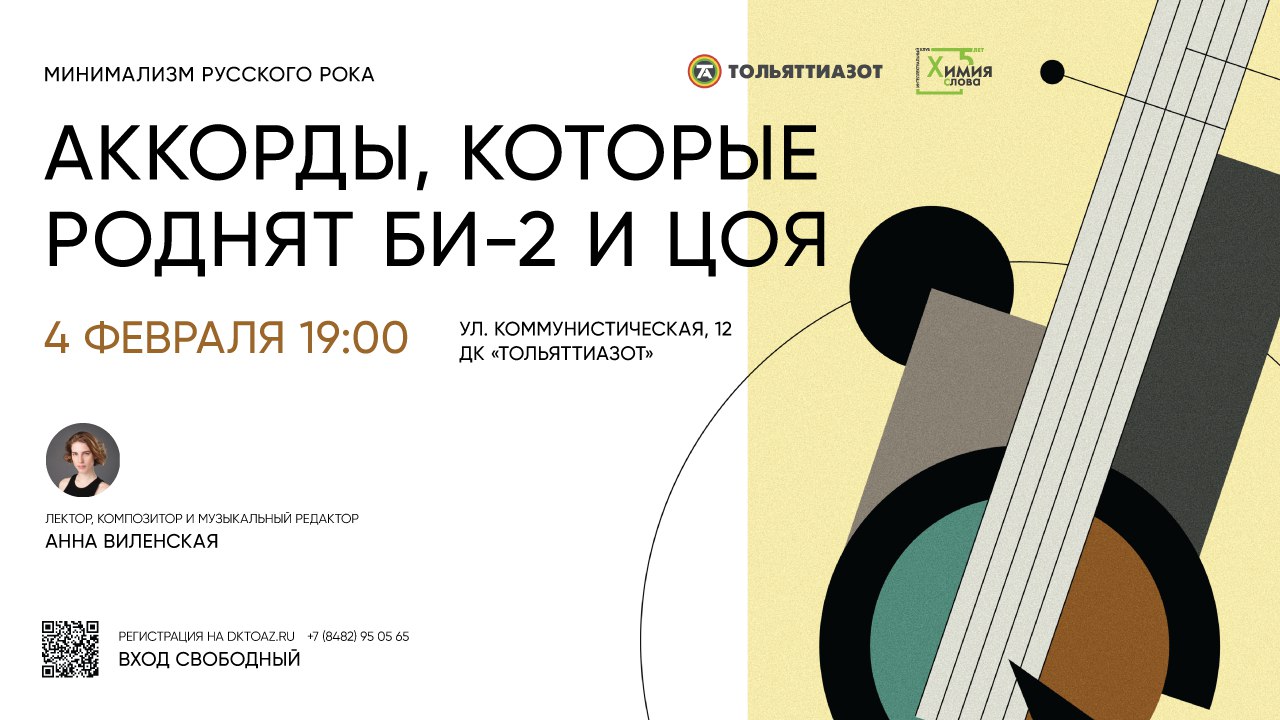Мероприятие пройдет в рамках лектория ПАО «ТОАЗ» «Химия слова» 4 февраля в ДК «Тольяттиазот» (ул. Коммунистическая, 12). На лекции горожане узнают, что из себя представляет рок-культура. Принять участие в мероприятии можно бесплатно, пройдя регистрацию на этой платформе: http://amp.gs/jmwTd