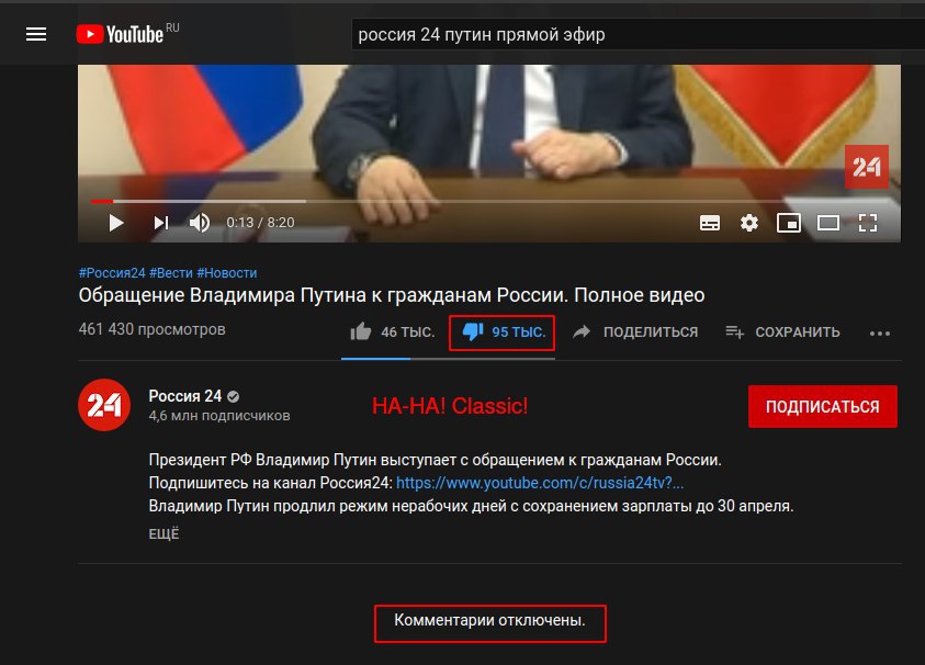 Прежде Путин хотя бы раздавал деньги или обещания. Сегодня не прозвучало ничего. Хотя запасы валюты и золота в стране велики. Когда, как ни теперь они нужны для помощи гражданам и бизнесу? Какого еще черного дня нам ждать? А вместо этот президент просто попрощался с нами до майских, уйдя на самоизоляцию, в которой на самом деле пребывает уже 20 лет, живя жизнью, отдельной от жизни народа.