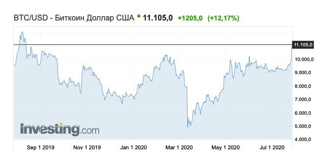 Биткоин продолжает быстро расти, обновляя максимумы с прошлого августа. Уже дороже $11 тыс.