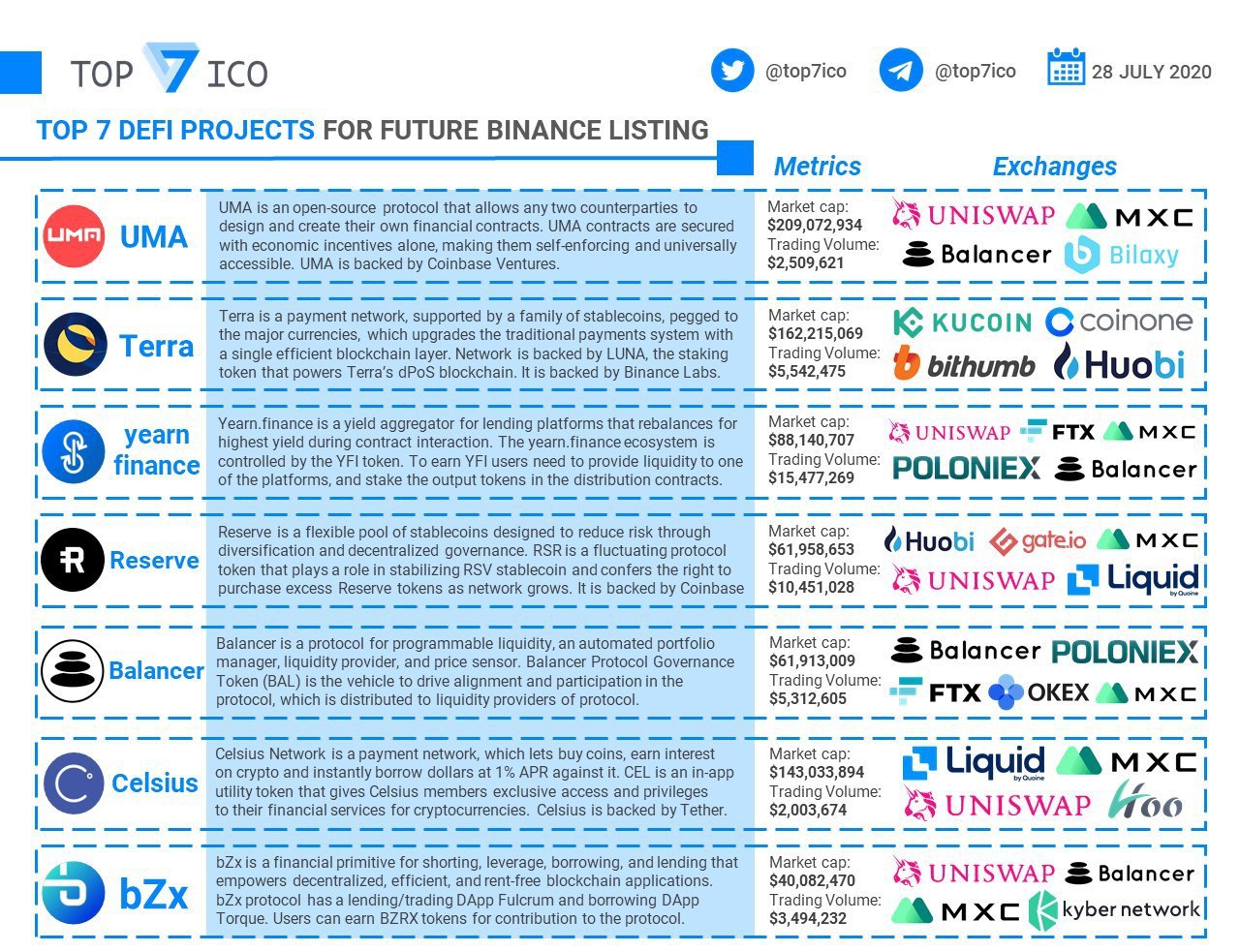 Binance has already listed some notable DeFi projects during last weeks: Maker, Compound, Synthetix, etc. We compiled a list of other promising DeFi projects with strong fundamentals, which are already tradable and might be a good fit for Binance. Who is the most deserved candidate for the next Binance listing in your opinion?