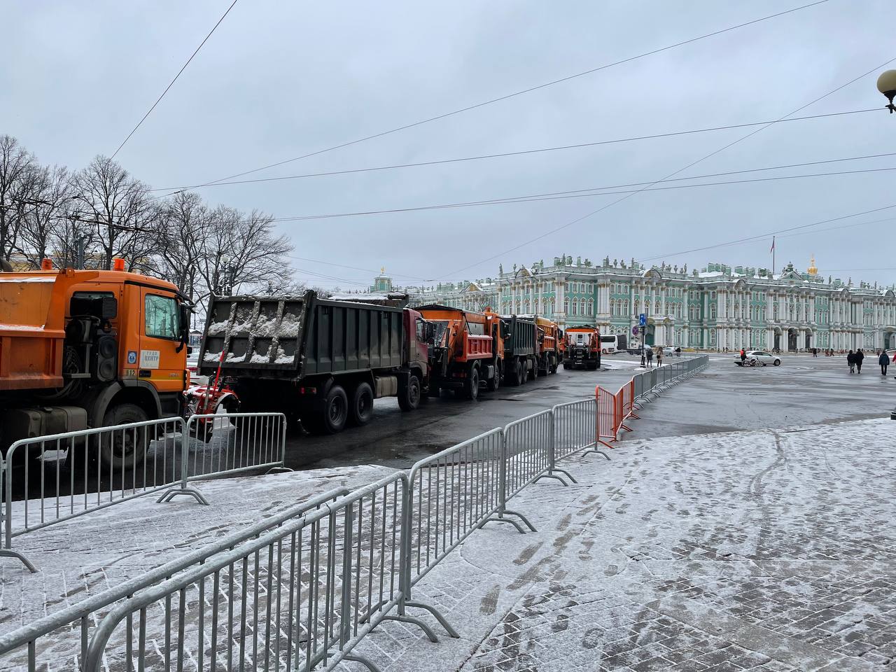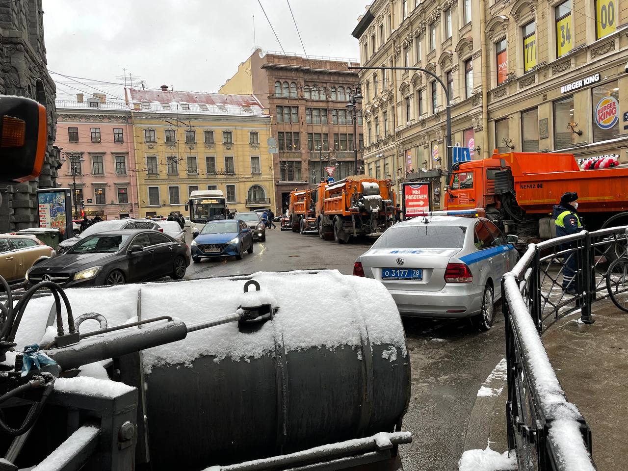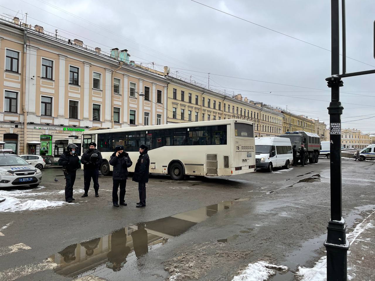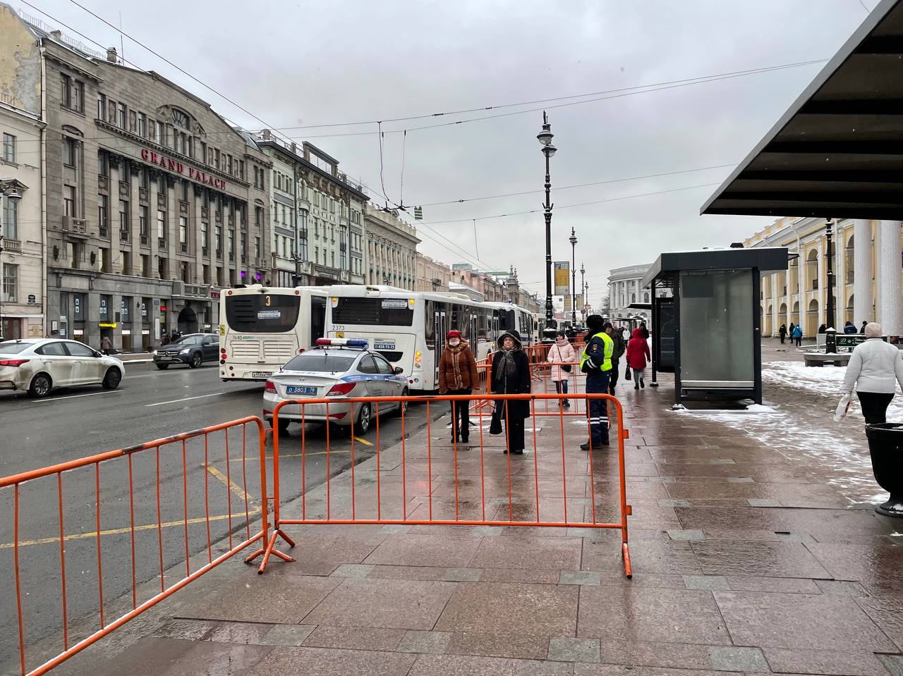 Решение по замене Алексею Навальному срока с условного на реальный все ближе — а у Гостиного двора полицейские с закрытыми жетонами начали останавливать прохожих и проверять у них документы. На Дворцовой тем временем выстроились силовики со щитами, а снегоуборочные машины вдоль Невского готовы перекрывать улицы.