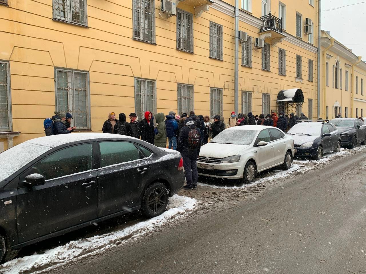 Тем временем в спецприемник на Захарьевской, куда доставили многих арестованных после митинга 31 января, люди пытались передать еду и одежду. Передачи принимали очень медленно, в очереди в момент собрались около 30 человек. Прием должен был закончиться в 17:00, передать вещи задержанным смогли не все.