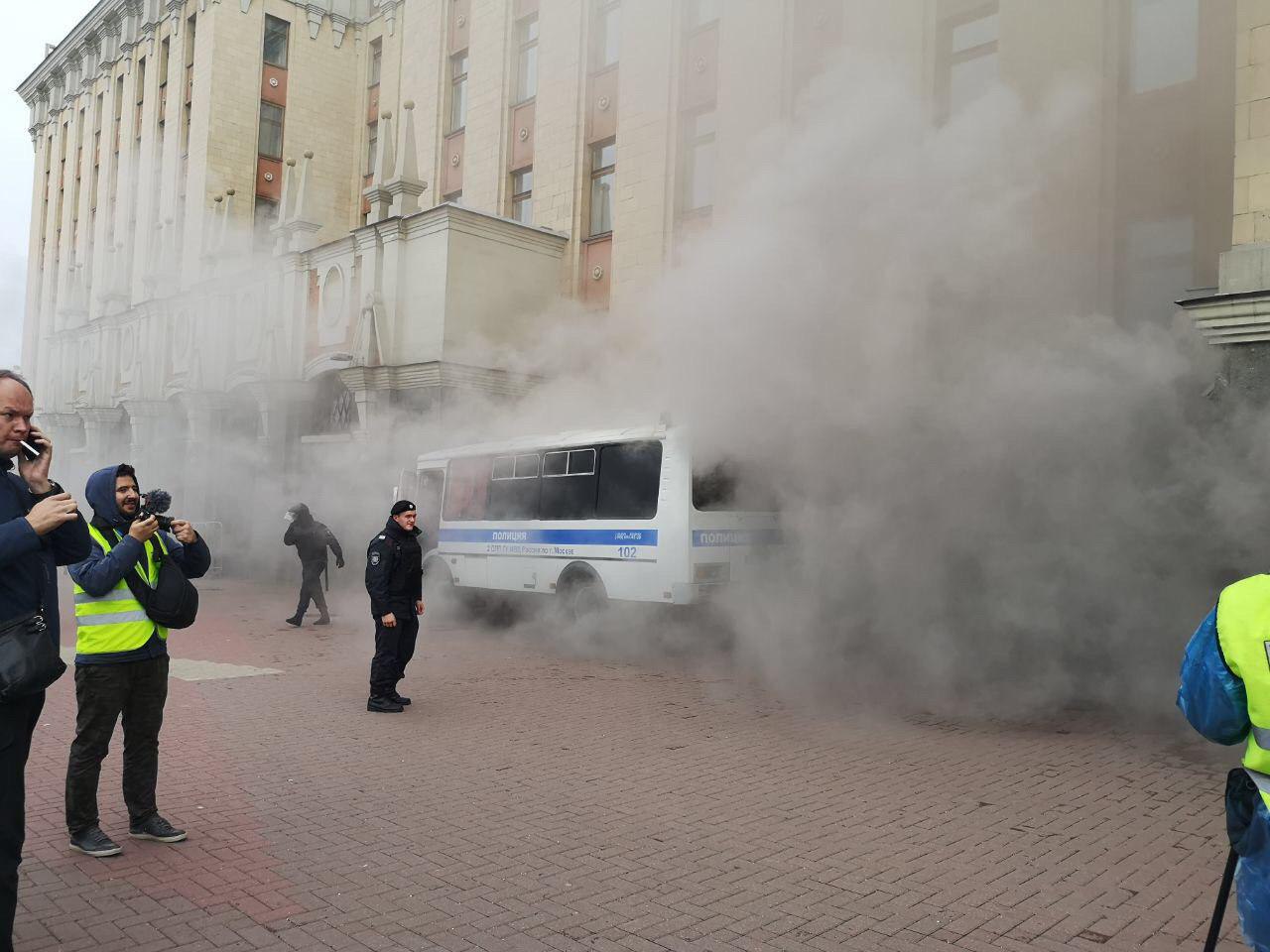 Провокаторы кинули дым в автозак.