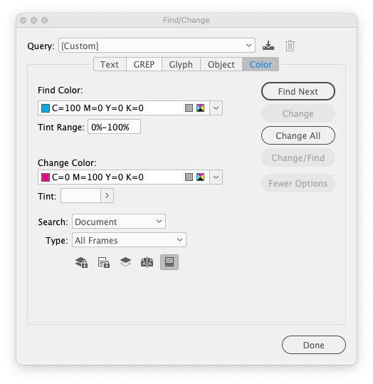 #Вопрос indesign. Создал прямоугольник на страинце в самом индизе. Копировал его на остальные.. Теперь мне нужно изменить цвет прямогульника, можно ли как то применить палитру ко всем обьектам сразу?