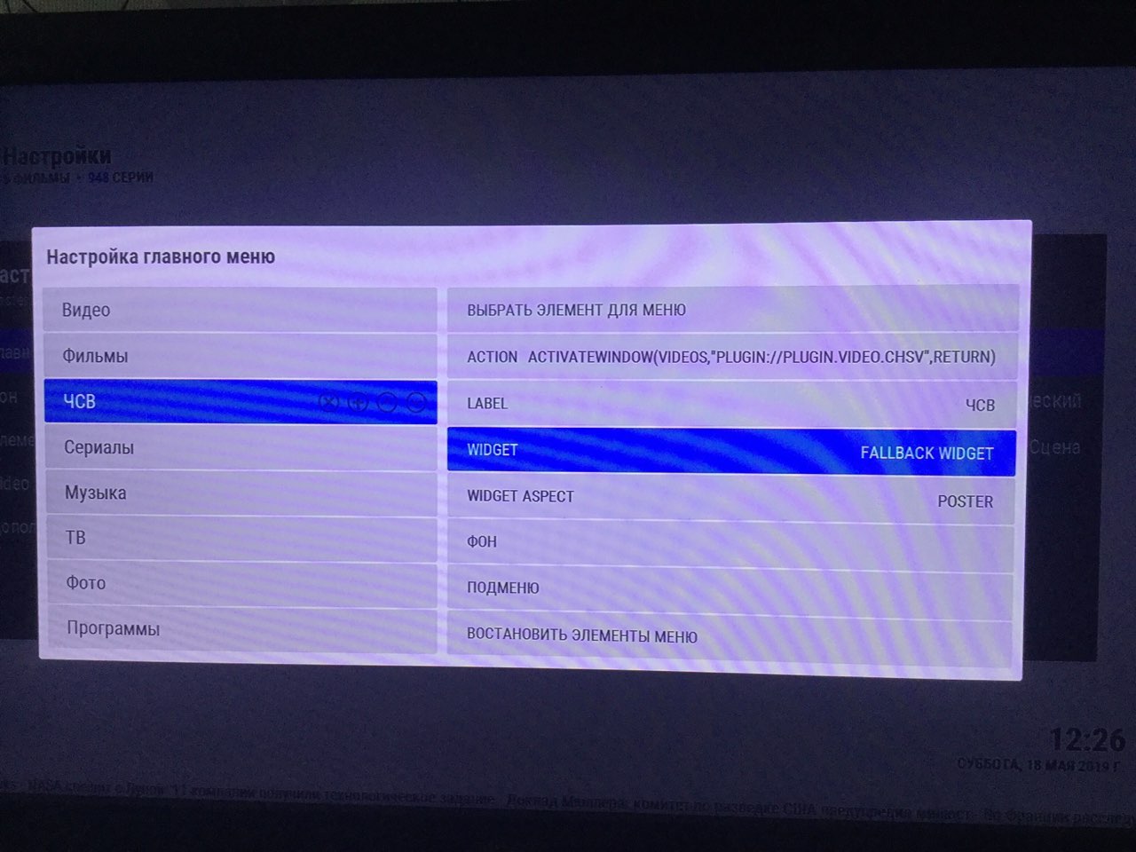 Настройки-настройки обложки-настройка главного меню-наводишь фокус на подпункт, после которого хочешь вкорячить ЧСВ-нажимаешь +, появится новый пункт меню- Выбрать элемент для меню - дополнение-видеодополнение-ЧСВ-сделать элемент меню сдесь. Там же widget точно так же как и пункт меню. И будет как у меня