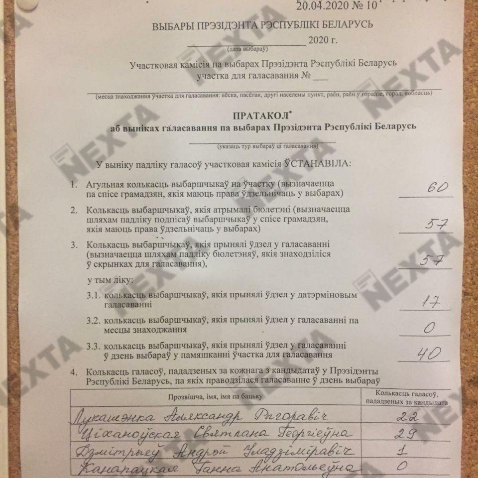 На 26 избирательном участке в д. Копище (Новая Боровая) опубликовали реальный результат — Тихановская набрала 90 %. Народ скандирует членам избирательной комиссии «Спасибо».