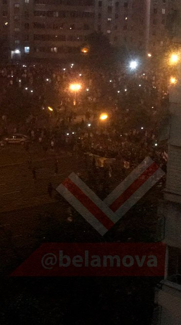 Колонна демонстрантов возле Дворца Спорта
