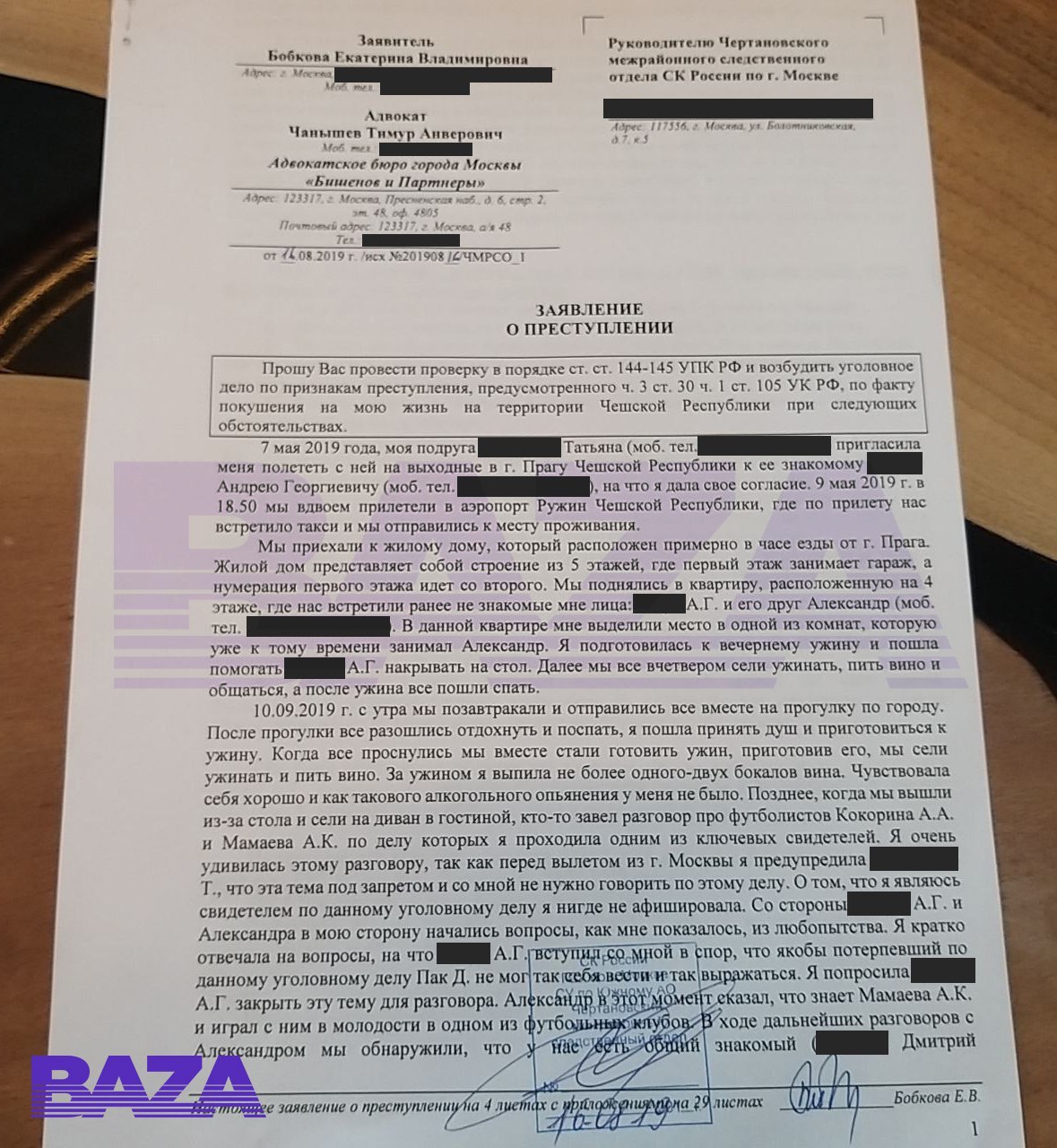 Свидетель по делу Кокорина и Мамаева подала заявление в СКР. Екатерина Бобкова считает, что её могли попытаться убить, сбросив с балкона. Произошло это, по мнению Бобковой, после разговора о футболистах.