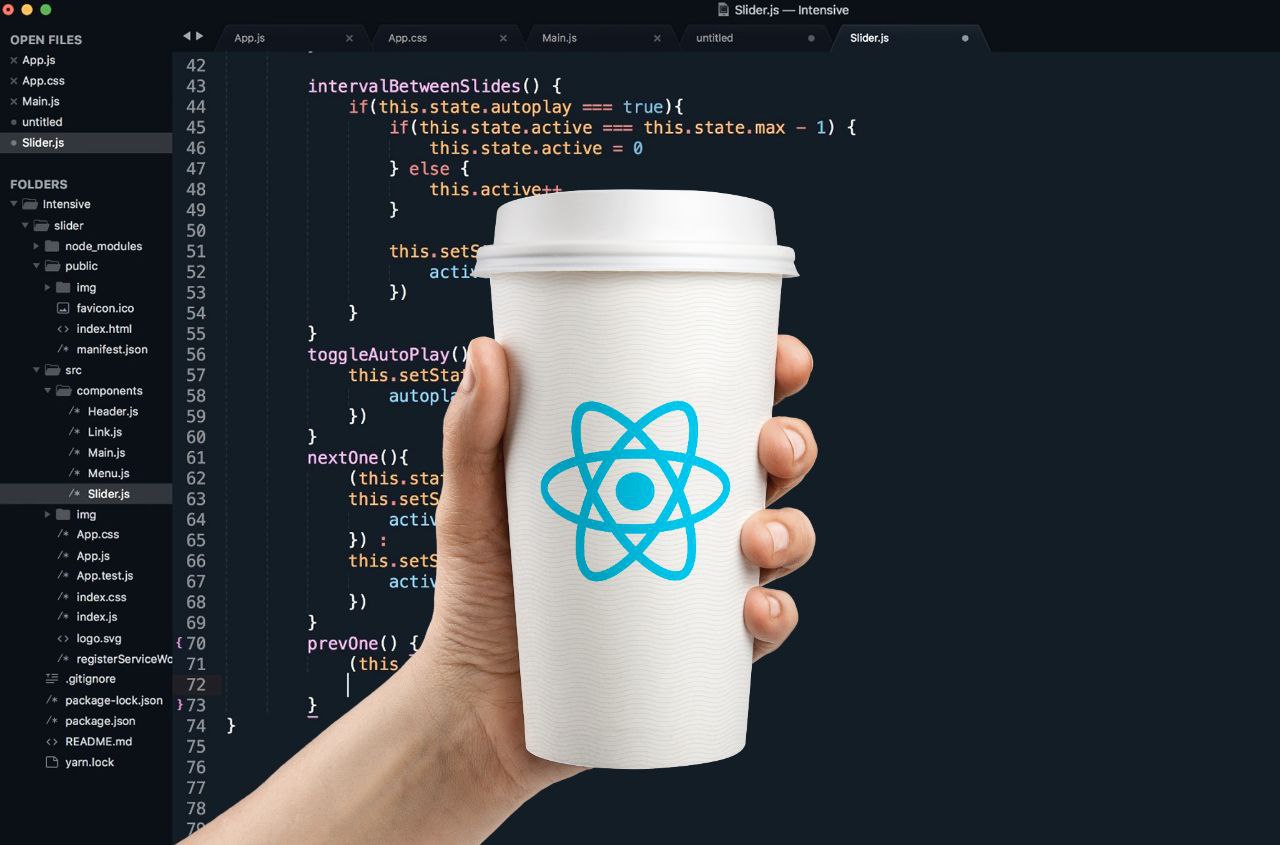 ✔️ создание и использование компонентов React;