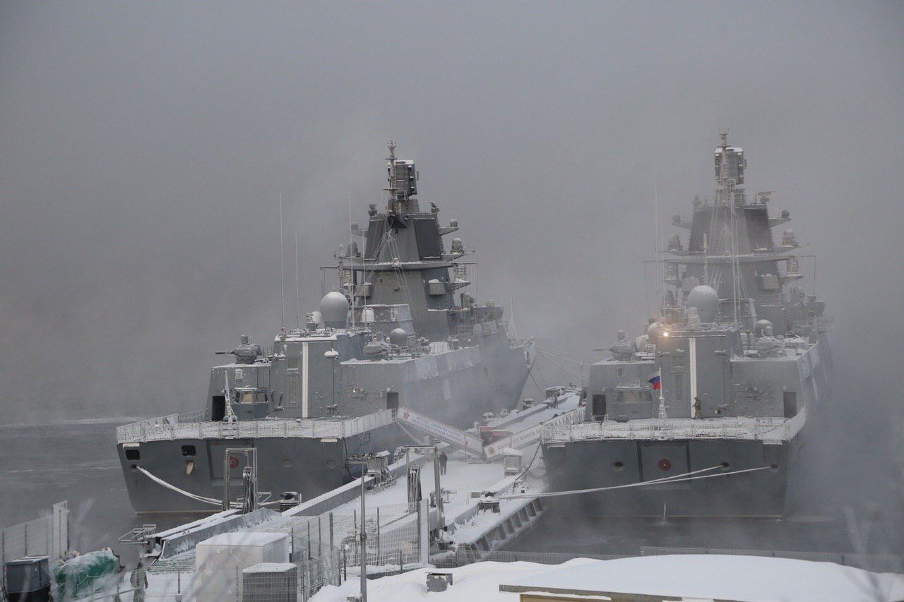 Мичман тут поспрашивал военно-морских фотографов, и мы удивлённо осознали, что красивых фото двух фрегатов проекта 22350 разом, в одном кадре, просто нет.