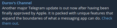 This update is available right now for users that installed the app from Telegram site. It will be available soon on the Stores too.