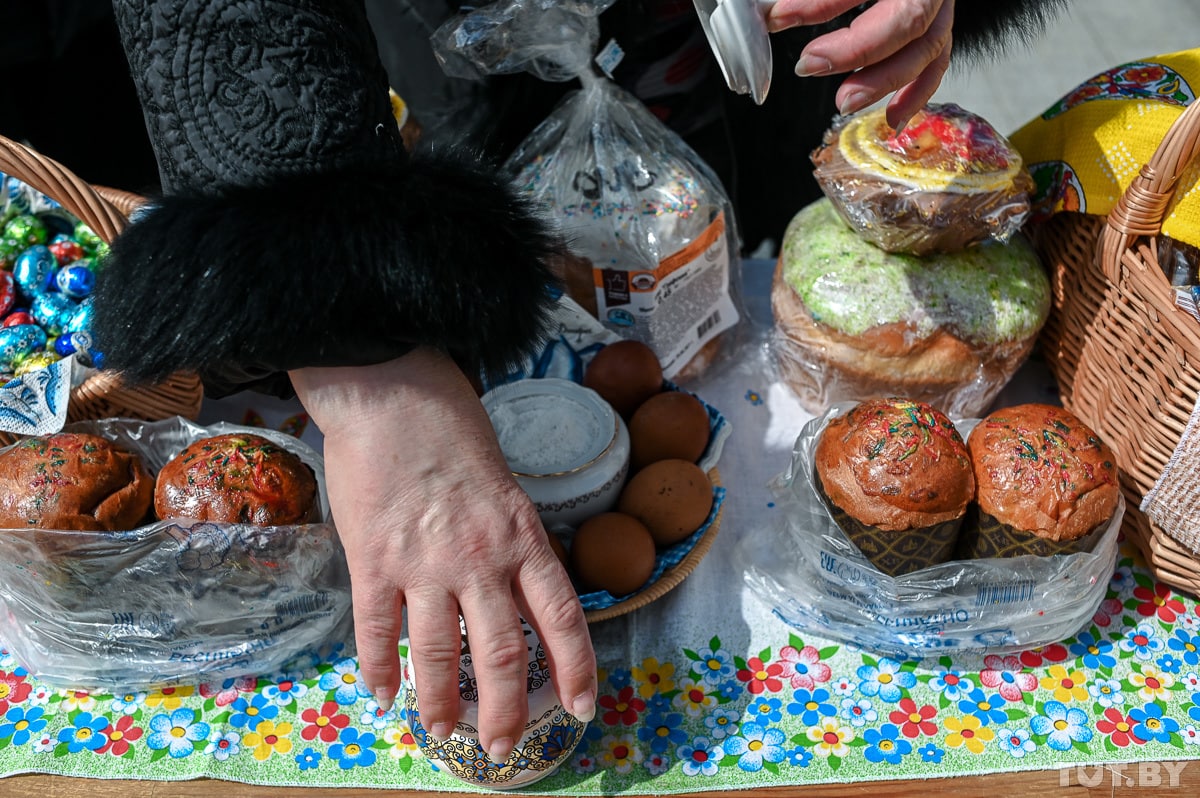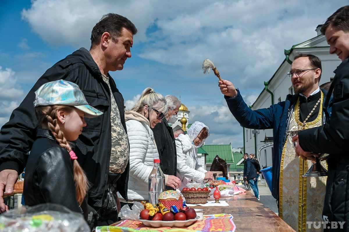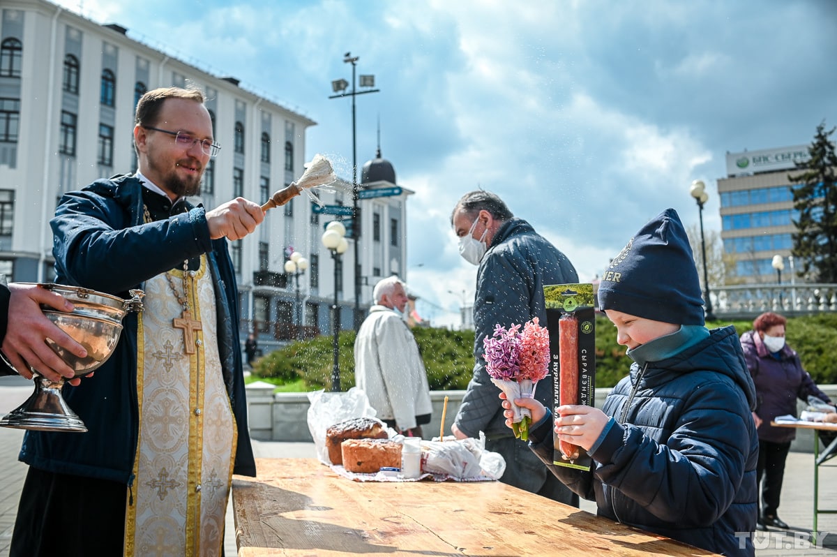 Людей, по ощущениям, в этом году меньше, чем предыдущие годы. По всей видимости, из-за пандемии. Многие верующие приходят в масках, а священники стараются чаще выходить освящать еду, чтобы не было большого скопления людей.