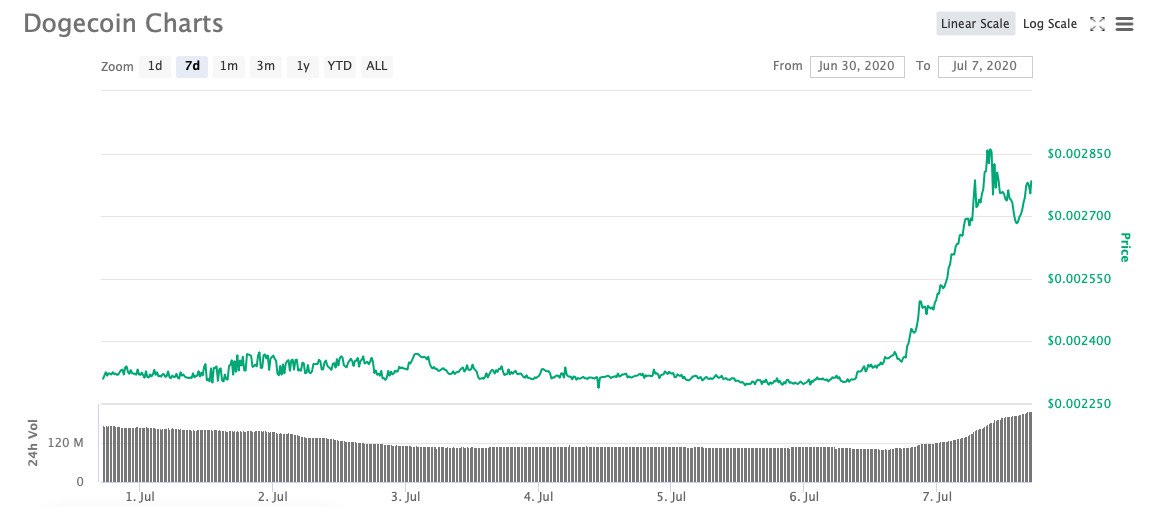 Похоже, пиар-акция Dogecoin в TikTok, о которой мы вчера рассказывали, сработала. Под утро DOGE допрыгнула до 0.0047 доллара. В итоге у монеты 53 процента роста за сутки, хотя было и больше.