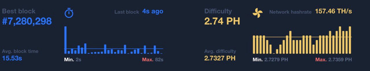 Сложность падает, блоктайм идёт в сторону 14 секунд. Всё по плану. Ребята из Эфириума — молодцы!