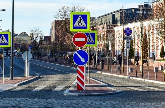 Обозначение островка безопасности: у нас и в Польше