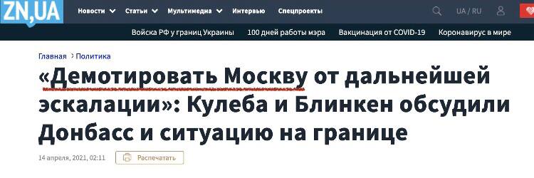 «деэскалация на территории Украины произойдет только при отказе украинских вооруженных сил от провокационных действий». При этом Песков, в контексте международных переговоров, заявил, что
