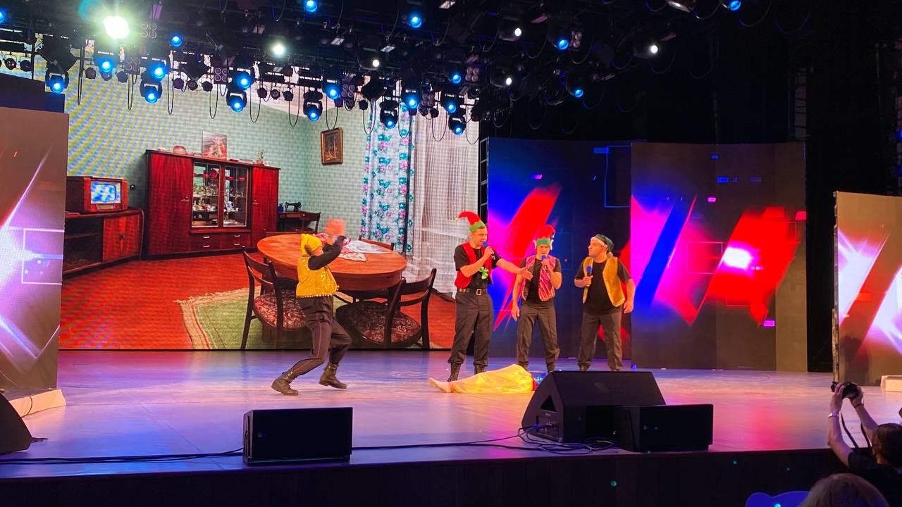 Есть смешные гэги от ребят, которые, надеюсь будет видео на трансляции, ибо зал не выкупил.